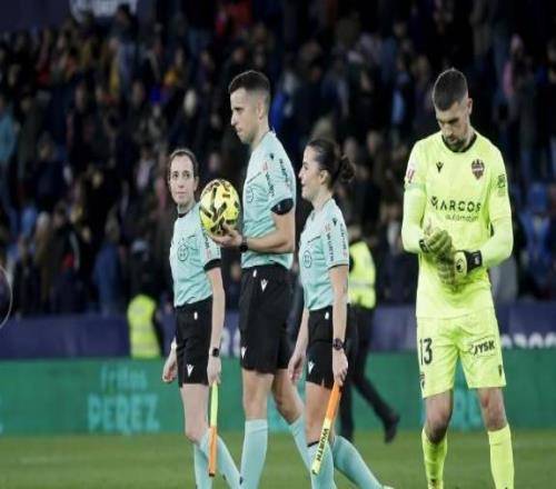 莱万特vs马竞的比赛中两名边裁都是女性,为西甲历史首次