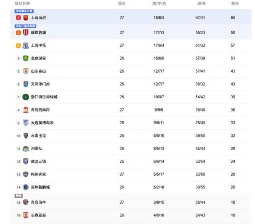 北京时间10月17日晚,中超第27轮比赛结束3场焦点战!主场作战的成都蓉城队3-1击败梅州客家队;客场作战的上海申花队,2-1逆转9人青岛西海岸队!而上海海港队则4-3险胜青岛海牛队。这3场比赛结束后,中超积分榜的争冠和保级形势可谓是彻底乱成一锅粥:3队角逐冠军,4队保级!