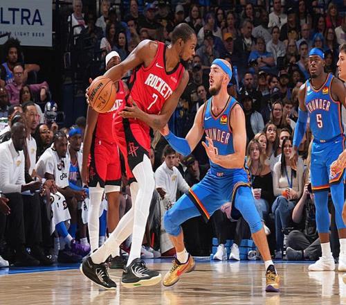 在此前的一场NBA常规赛中,主场作战的卫冕冠军俄克拉荷马城雷霆经过双加时苦战后以125比124险胜了休斯顿火箭,取得了新赛季NBA常规赛的开门红,而火箭则是有些遗憾地遭遇了开门黑。