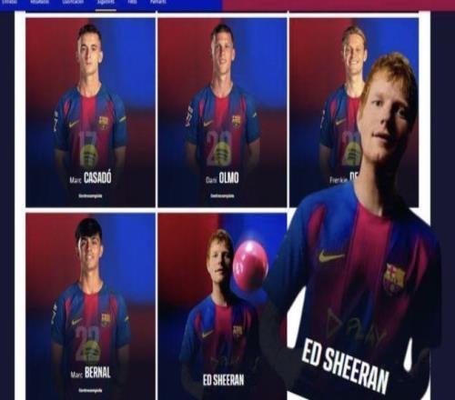 雷速体育10月22报道 本周末西班牙国家德比前,巴萨官网出现了一位出人意料的“新援”——英国知名歌手埃德·希兰(黄老板)。他被列入了球队一线队名单中,位置为中场。