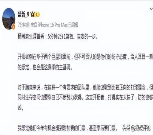 媒体人“盛哲”发文点评:开拓者倒在华子两个巨星球面前,但不可否认的是他们的防守态度,给人耳目一新的感觉,也会是这赛季的主基调。