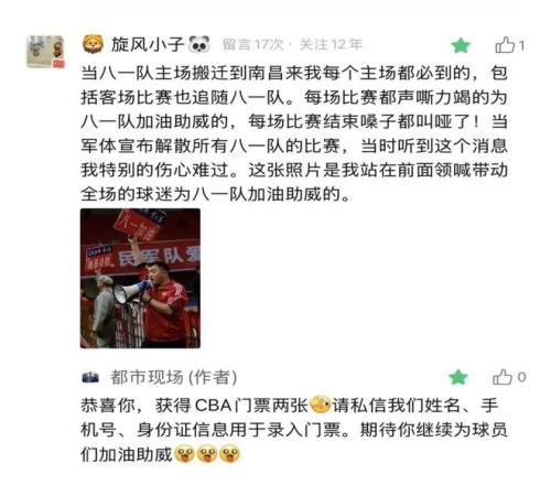 即有机会获得CBA俱乐部杯(南昌赛区)门票