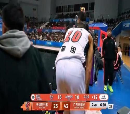 奎因意外伤退,对于天津是个利好,是要继续和广东斗快攻反击,还是先放慢节奏控制好失误?天津选择前者,但接下来他们还是打的很随意,几乎没什么章法,有机会就投,林庭谦没组织明白进攻,反而让天津越输越多。