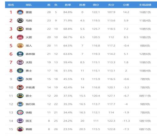 今日比赛后西部排名没有变化,只是胜场差有所改变,西部最新排名如下: