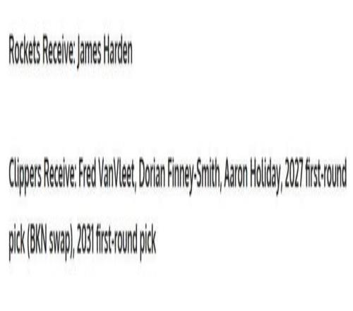 如果范乔丹不能在3月份或者更早回归,那么火箭队就需要引进一名核心控卫,哈登无论是从能力,还是从情感角度考虑都是不错的选择,交易方案对于快船队也具备不错的吸引力。