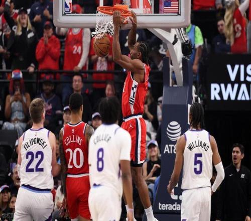 4、李凯尔油箱还有库存!本赛季在爵士的机会不多。常规时段场均6.7分2.6篮板3.1助攻,数据虽平淡,但49%的投篮命中率展现高效终结能力。在今天球队深陷伤病潮时,他挺身而出,全场比赛10中8轰下22分篮板,正负值 +7,创赛季新高。作为替补轮换,他的全面性与关键时刻的韧性,成为爵士防守漏洞百出背景下的重要补充,展现了角色球员的价值与爆发力。
