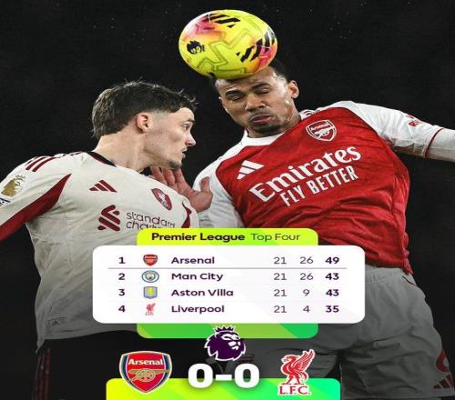北京时间1月9日04:00,英超联赛第21轮,阿森纳坐镇酋长球场迎战利物浦。上半场布拉德利中横梁,利物浦0射正,两队暂0-0战平;下半场因卡皮耶伤退,最终阿森纳0-0利物浦,5连胜遭终结,6分领跑积分榜。