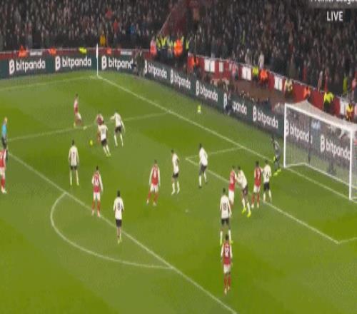 直到第27分钟,布拉德利送出直传,弗林蓬前插接应,萨利巴和拉亚配合失误,后者解围不远。布拉德利将球断下,禁区外起脚吊射,皮球击中横梁弹出,随后加克波补射被封堵,阿森纳逃过一劫。