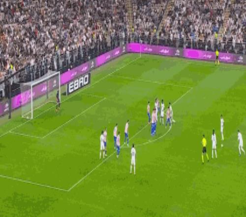 第2分钟,贝林厄姆前场推进被犯规,皇马获得前场定位球机会,巴尔韦德主罚选择直接打门,远距离助跑后轰出超级世界波,皇马1比0打出梦幻开局。