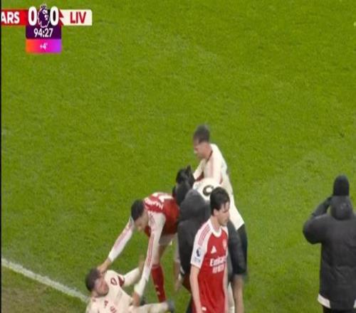 阿森纳对利物浦比赛中爆发争议一幕:马丁内利行为引众怒