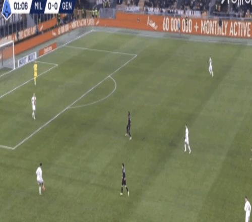 38:15,米兰左路攻势,莱奥背身不停球斜塞给普利西奇,但被热那亚中卫厄斯蒂高预判卡位,随后美国队长反抢犯规。