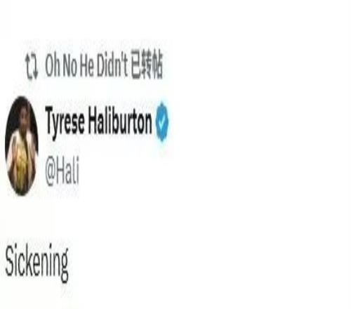 因右脚跟腱撕裂本赛季报销的步行者当家球星哈利伯顿,直言不讳点评了该场比赛,在个人社媒上写道:“令人作呕。
