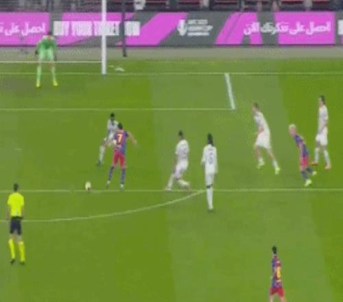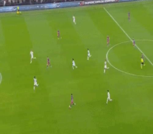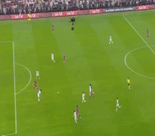 伤停补时阶段,双方突然爆发!补时第2分钟,贡萨洛-加西亚分球,威尼修斯左路内切检阅巴萨后防,利用个人能力一条龙推射破门,皇马扳平比分,1-1!