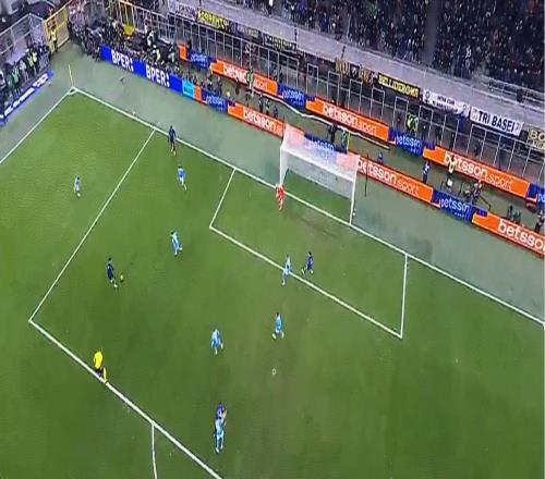 过程如下:补时第2分钟,皮奥回撤到中场协助推进,成功转身眼看成反击之势,小胡安战术犯规染黄(若非裁判上半场放过了小胡安踹胸之举,那不勒斯此战本该少打一人)。随后国米就势围攻,博尼在左边路对抗取胜后做球,姆希塔良劲射碰后卫偏转后打中门框。