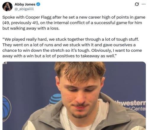 赛后谈到与弗拉格同场对决,克努佩尔坦言:“全明星赛时自己会与他见面,然后我俩准备在那个周末之后一起回一趟杜克大学,刚才我俩就在聊这些。”