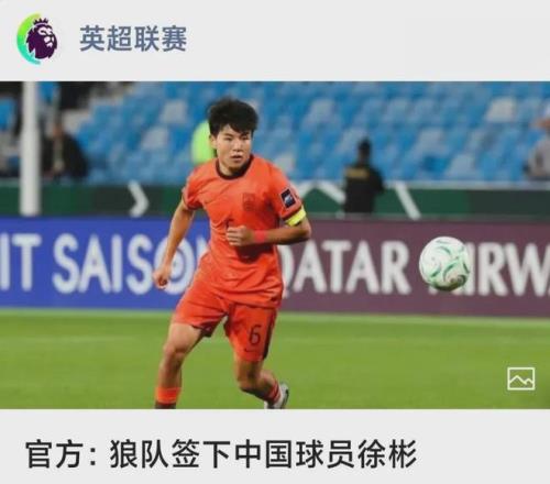 1月30日,英超英格兰狼队足球俱乐部官方发布公告,宣布中国U23男足队长、湖北省专业运动员徐彬正式加盟球队。这意味着,我省专业运动员首次加盟英超联赛球队。