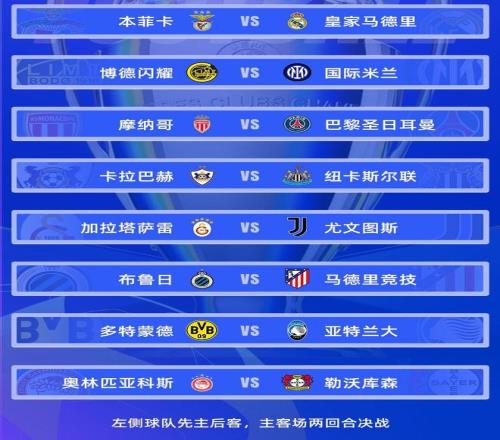在附加赛中获胜的8支俱乐部将晋级16强,与直通的8支队(阿森纳、拜仁、利物浦、热刺、巴萨、切尔西、葡萄牙体育、曼城)一起,组成本赛季欧冠16强的最终阵容。