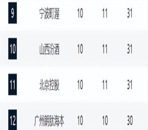 宁波、山西、北控和广州都是10胜,他们排在9-12。这期间山西和广州全部都是连败,山西是因为张宁的缺席,已经四连败了。广州这轮则输给了福建。北控保持三连胜,他们终于崛起了,这还是他们本赛季第一次三连胜,内线整体的发挥非常好,成为基本盘。宁波这轮战胜辽宁,让他们拿下了卡位战。