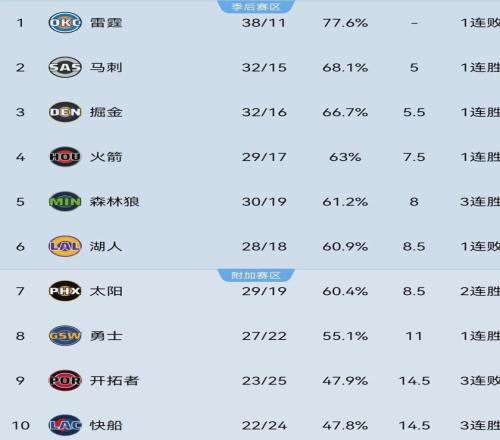 目前为止,太阳以29胜19负排名西部第七,领先第八的勇士2.5个胜场,已抹平与第六的湖人胜场数,仅落后第四的火箭1个胜场,距离季后赛区域只差临门一脚,而他们上赛季拥有豪华阵容(杜兰特+布克+比尔)都未能打进季后赛。