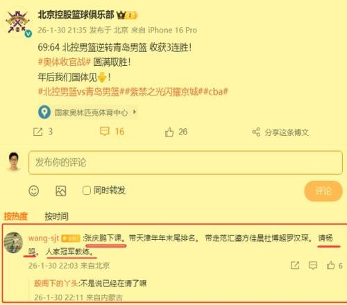 张庆鹏的北控队已经取得3连胜,但球迷仍然希望换杨鸣执教,双方也确实有接触!