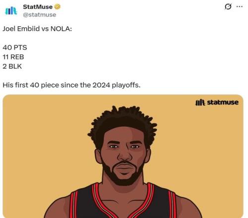 无惧乔治禁赛25场!恩比德狂轰40+11梦回巅峰率队14战10胜高歌猛进,超级探花也因祸得福获得更多机会。