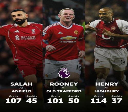 在与纽卡斯尔联的英超第24轮比赛中送出1次助攻后,萨拉赫在安菲尔德球场进行的英超比赛中已直接参与152球,打破了亨利和鲁尼保持的英超单一球场参与进球最多纪录。
