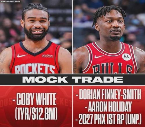 NBA交易截止日(2月6日)即将临近,美媒急不可耐为火箭出谋划策,比如打包送出芬尼-史密斯+霍勒迪+27年首轮签,从公牛挖来科比-怀特。