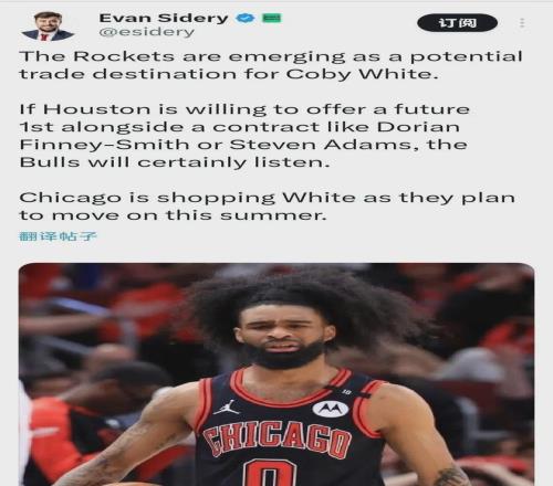名记Sidery也表示,火箭成为怀特的潜在下家之一,公牛正在评估交易方案。