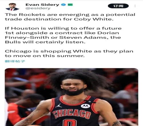 名记Sidery也表示,火箭成为怀特的潜在下家之一,公牛正在评估交易方案。