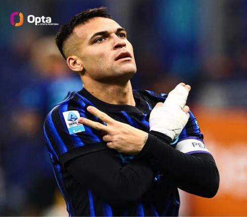 劳塔罗-马丁内斯在意甲为国际米兰的进球数达到128球,与阿尔托贝利并列俱乐部历史意甲射手榜第四位——仅有朱塞佩-梅阿查(197球)、贝尼托-洛伦齐(138球)和涅尔什(133球)在意甲为蓝黑军团攻入更多进球。