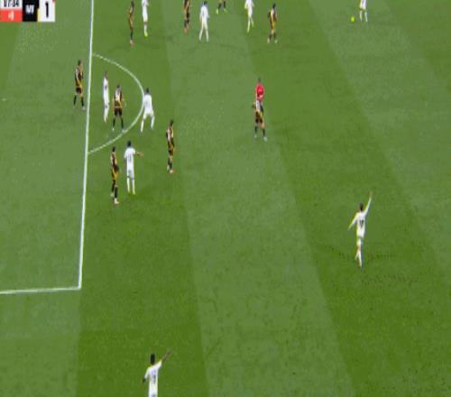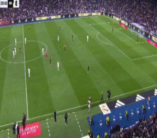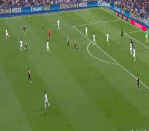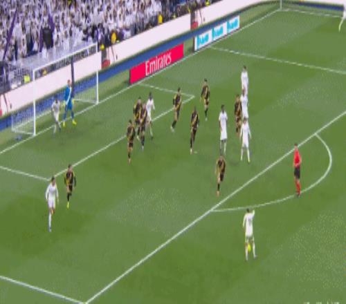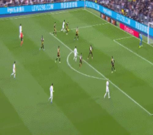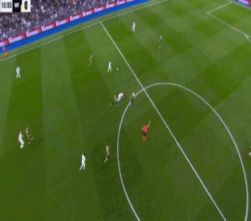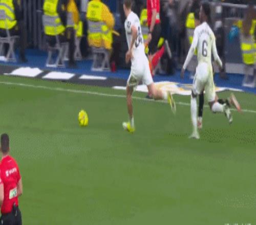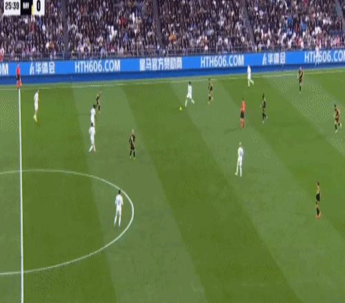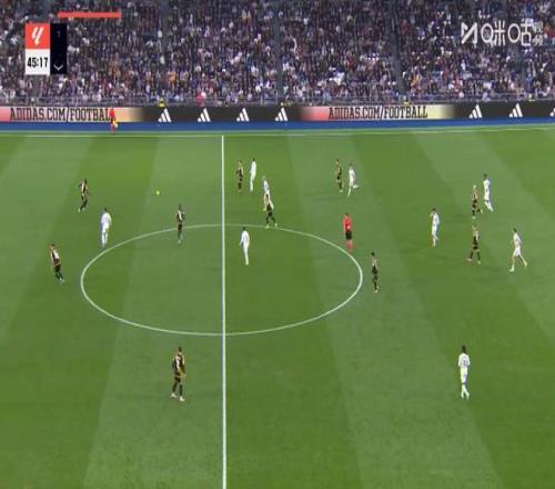 第46分钟,单后卫阵容,皇马场上正牌后卫仅赫伊森,楚阿梅尼撤回防线