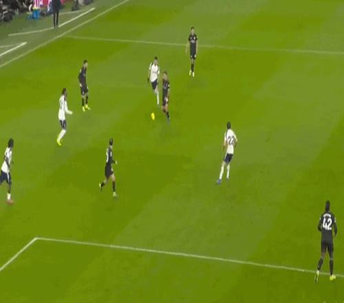 第52分钟,哈维-西蒙斯送出精准挑传,索兰克禁区内单挑曼城后防线,面对多纳鲁马冷静推射破门,热刺扳回一城,1-2!