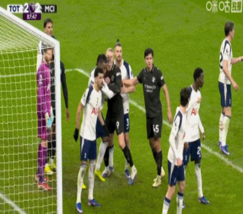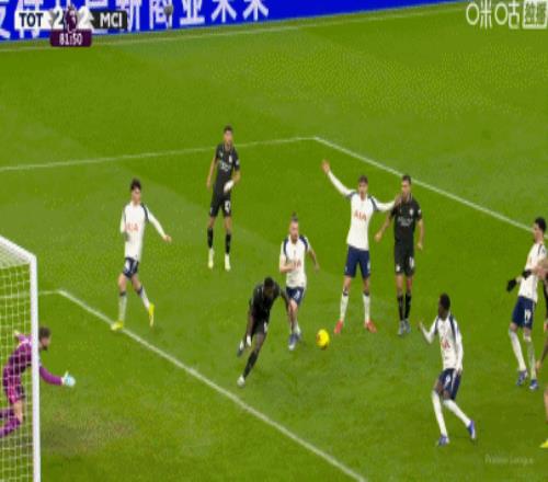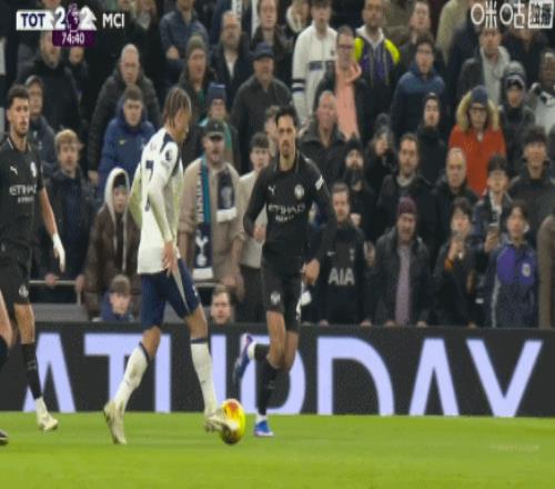 第44分钟,B席禁区内横传,塞门约轻松抽射破门,曼城2-0热刺