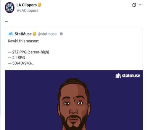 快船队官方也对此感到无语,晒出小卡数据的同时指出,小卡三项命中率高达50/40/94%,同时抢断和罚球命中率更是高居联盟第一。