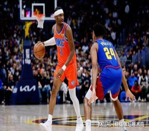 比赛伊始,双方便展现出了季后赛级别的对抗强度。作为雷霆队的绝对核心,谢伊·亚历山大从第一节开始便展现了MVP级别的竞技状态。他不仅能够利用犀利的突破撕裂掘金的防线,还能在关键时刻用精准的跳投给予对手致命一击。全场比赛,亚历山大出战高效,砍下了全场最高的34分,并送出了13次助攻,同时贡献5个篮板和2次抢断。他在进攻端的梳理和得分,成为了雷霆队维持领先优势的定海神针。