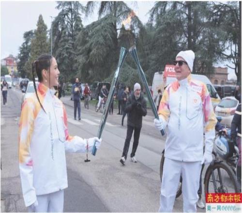 1月19日,谷爱凌(左)参与米兰冬奥会火炬传递。