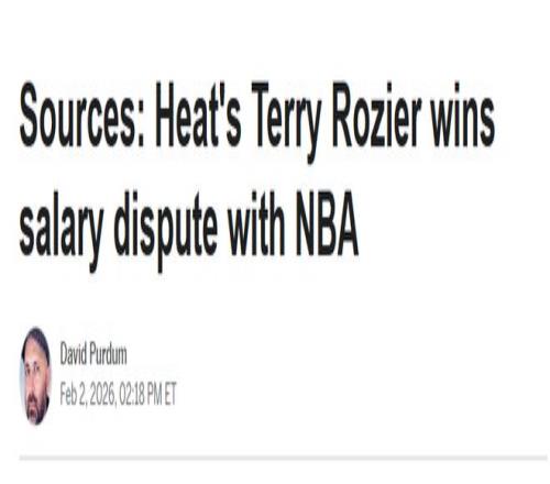 北京时间2月3日,据ESPN援引消息人士报道,在迈阿密热火队后卫特里-罗齐尔与NBA的薪资纠纷仲裁案中,仲裁员今日作出支持罗齐尔的裁决。该纠纷源于罗齐尔在联邦赌球调查中被提起公诉。