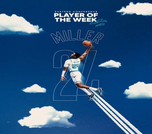 过去一周,米勒率领黄蜂打出4胜0负的战绩,场均贡献26.3分5.8篮板2.3助攻,三分命中率50%。