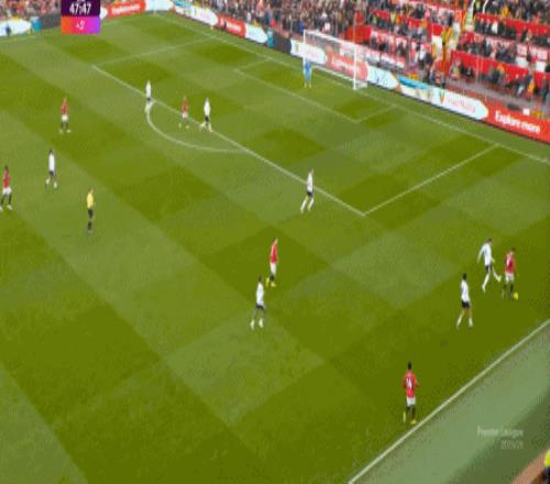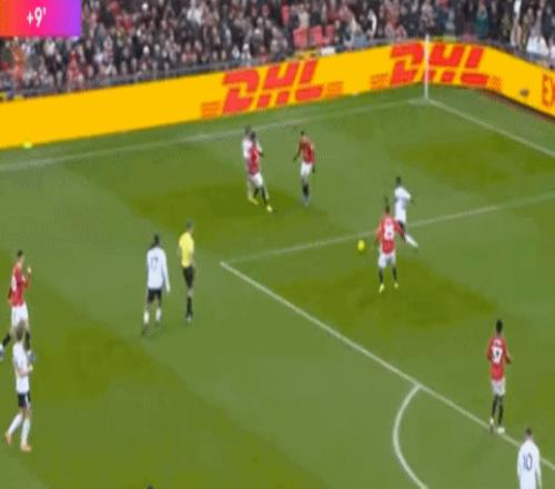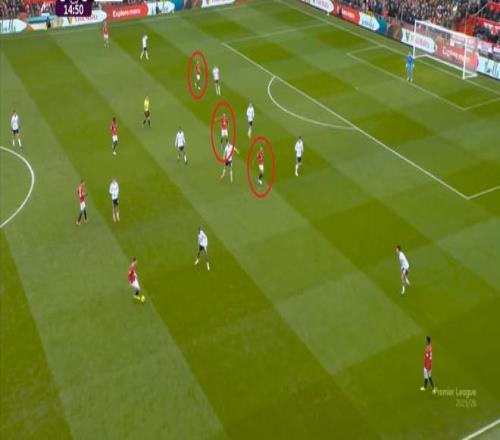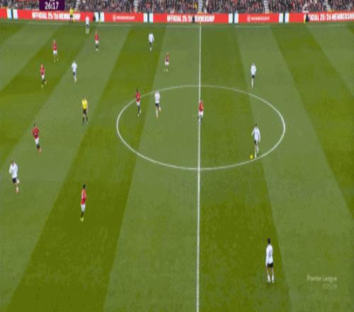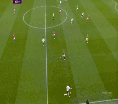 所以在守转攻当中,富勒姆在开场还曾抓住曼联无法及时转换的防守体系漏洞,富勒姆起球打身后的时候,曼联只有三个后卫镇守最后一线: