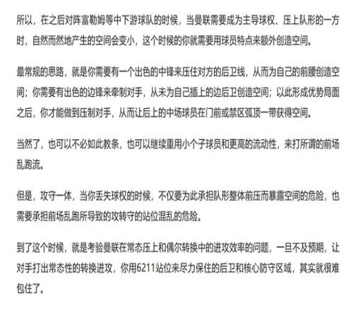 出现这样弹不出去的困境,包括在进攻当中因为各种原因而被打断,由此导致球队再次从高位折返回去,这一切都在消耗着曼联的后场。