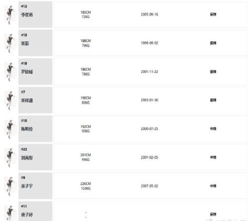 前锋:杨舒予,孙宇,李星诺,张茹,罗欣棫,张梓涵,唐子婷