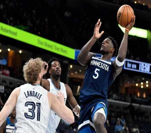 森林狼过去4场连赢勇士、独行侠、雷霆与灰熊收获2连胜,灰熊过去6场遭遇6连败,本赛季前两次交锋双方各取一胜。本场森林狼缺少香农,灰熊缺少莫兰特、伊迪、小皮蓬等。首节开局森林狼7-2领先,爱德华兹率队继续扩大13-7领先优势,灰熊连追4分。爱德华兹暴扣率队扩大17-13领先,灰熊多点开花一波12-2攻势反超6分,森林狼追到29-30仅差1分,灰熊连得6分,首节结束森林狼29-36落后灰熊。首节灰熊21中12,其中三分9中6,杰罗姆8分与韦尔斯8分;森林狼21中10,其中三分11中5,爱德华兹8中5命中2记三分得到12分与兰德尔7+3+3。