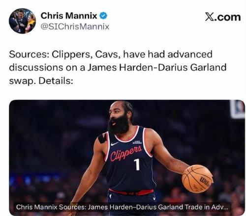 就在刚刚《体育画报》名记Chris Mannix报道前方传来重磅消息——多位消息人士透露,骑士和快船已经就一项交易进行了深入讨论,该交易将把哈登送去克利夫兰,换来达里厄斯·加兰。该消息爆出来后,Shams也表态确认——表示快船与哈登均正在积极努力,在交易截止日前完成哈登的换队交易。