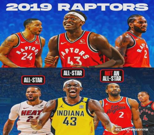 2019年猛龙冠军阵容当中,有两名球员入选了今年的全明星正赛:西亚卡姆和鲍威尔,小卡却落选了。值得一提的是,上赛季鲍威尔在快船跟伦纳德也是队友。其实上赛季鲍威尔入选全明星的呼声也很高,只不过西部竞争太激烈了!
