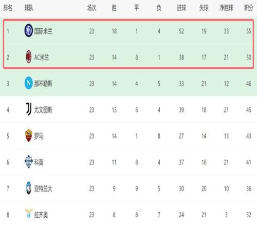 30!意甲争冠还有变数:米兰22轮不败+差榜首5分,国米有一隐患