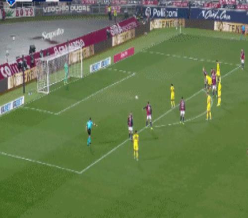 第17分钟,差之毫厘,福法纳前点头球攻门擦柱而出